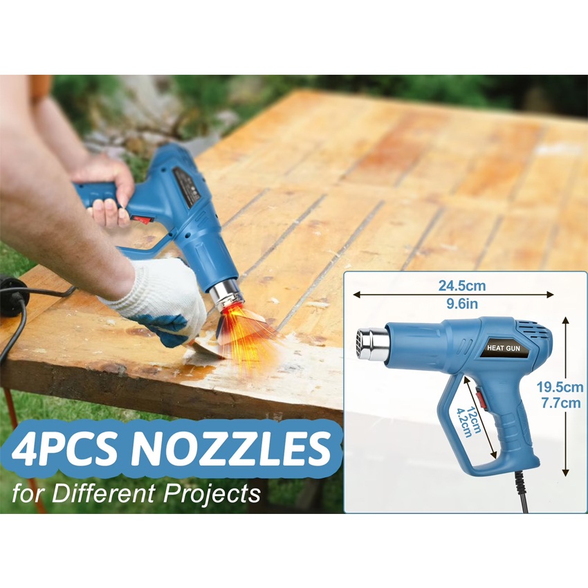 Whether you're working on shrink wrapping, paint stripping, plastic bending, soldering, or craft projects, this tool ensures precision and efficiency. The included 4 interchangeable nozzles help you direct heat exactly where needed, making every task easier and safer.