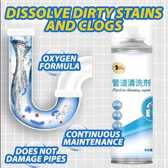 Keep your drains flowing smoothly with this advanced Oxygen Foam Pipeline Cleaning Spray. Designed to break down stubborn grease, hair, soap residue, and dirt, this powerful formula penetrates deep into pipes to dissolve blockages quickly and effectively. The rich foaming action expands inside the drain, reaching areas that ordinary cleaners miss, ensuring a thorough clean without damaging your pipes.