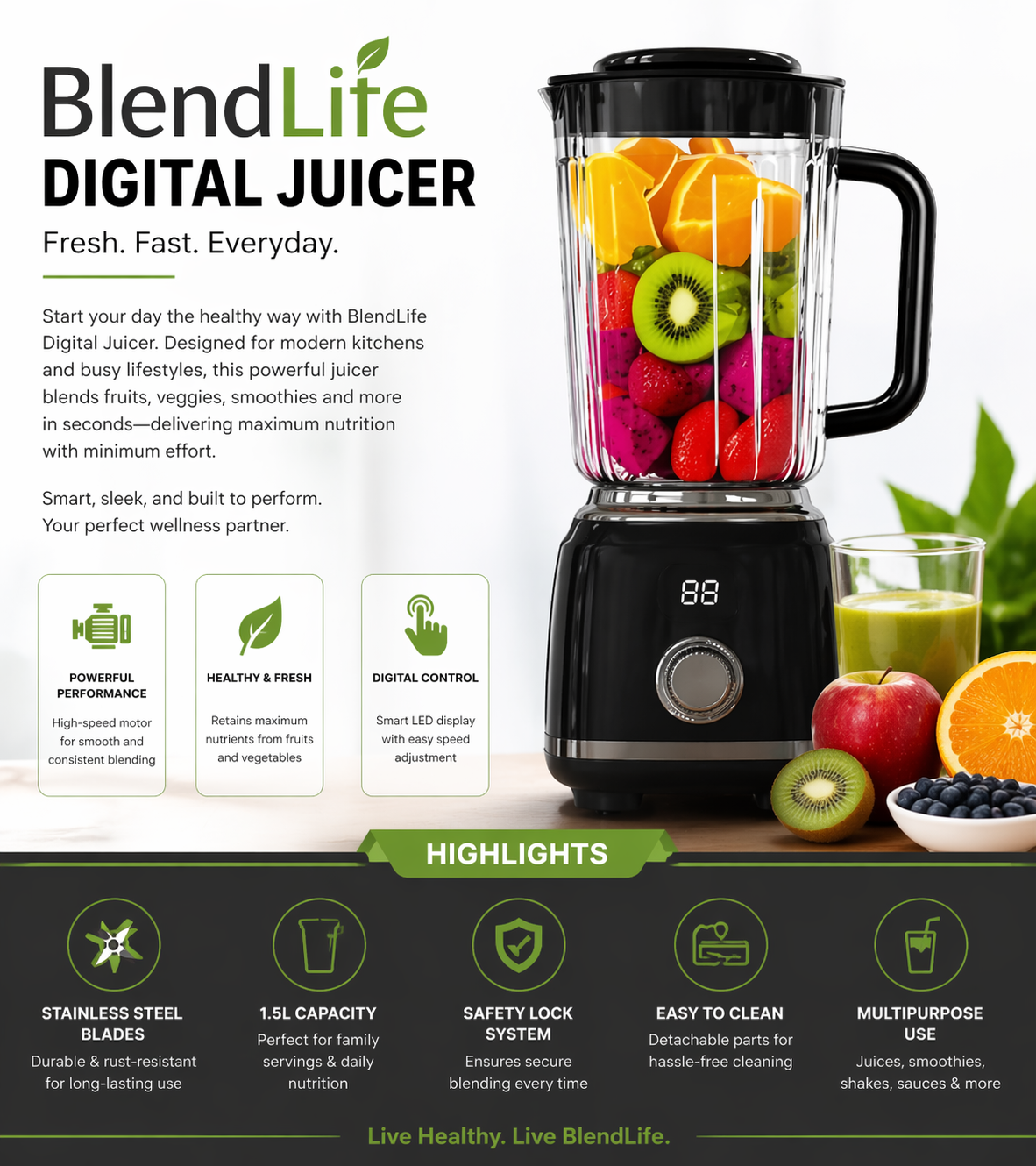✔ **Multi-Purpose Use** – Perfect for juice, smoothies, shakes & grinding
